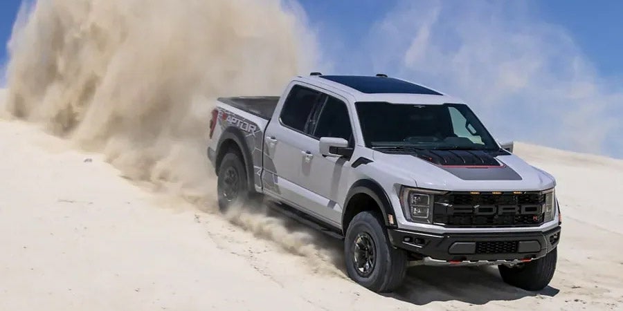 As if one F-150® Raptor® wasn't enough to shock the off-roading market, the all-new 2023 Raptor R™ takes it to a whole new level. Monstrous supercharged horsepower and a rugged long-travel suspension featuring FOX Live Valve shocks deliver next-level performance capability.