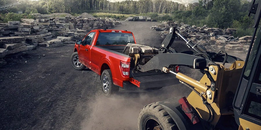 *Max payload on F-150® Regular Cab 8' box 4x2 with available 5.0L V8 engine and Max Trailer Tow and Heavy-Duty Payload Pkgs. Class is Full-Size Pickups under 8,500 lbs. GVWR. Max payload varies and is based on accessories and vehicle configuration. See label on doorjamb for carrying capacity of a specific vehicle.