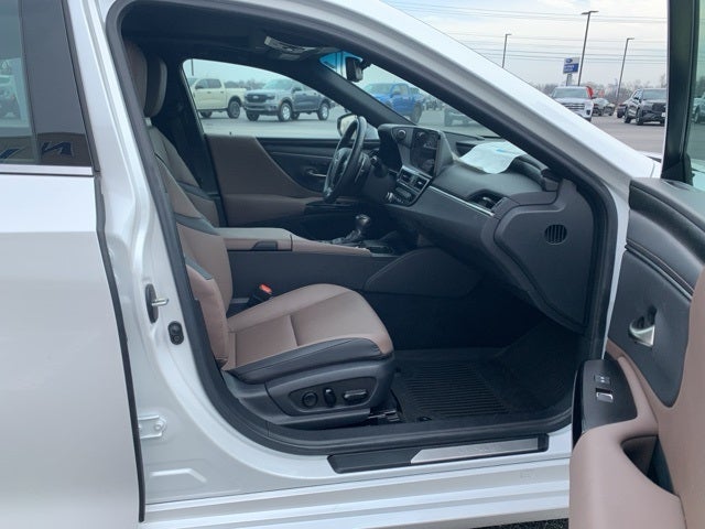 10 Speakers, 10-Way Power Adjustable Front Seats, 4-Wheel Disc Brakes, ABS brakes, Air Conditioning, Alloy wheels, AM/FM radio: SiriusXM, Auto High-beam Headlights, Auto-dimming door mirrors, Auto-dimming Rear-View mirror, Automatic temperature control, Brake assist, Bumpers: body-color, Compass, Delay-off headlights, Driver door bin, Driver vanity mirror, Dual front impact airbags, Dual front side impact airbags, Electronic Stability Control, Emergency communication system, Exterior Parking Camera Rear, Four wheel independent suspension, Front anti-roll bar, Front Bucket Seats, Front Center Armrest, Front dual zone A/C, Front reading lights, Fully automatic headlights, Garage door transmitter: HomeLink, Heated door mirrors, Illuminated entry, Knee airbag, Leather Shift Knob, Leather steering wheel, Low tire pressure warning, Occupant sensing airbag, Outside temperature display, Overhead airbag, Overhead console, Panic alarm, Passenger door bin, Passenger vanity mirror, Perforated NuLuxe Seat Trim, Power door mirrors, Power driver seat, Power moonroof, Power passenger seat, Power Rear Sunshade, Power steering, Power Tilt/Telescoping Steering Wheel w/Memory, Power windows, Radio data system, Radio: Lexus Interface w/8 Multimedia Touch Scrn, Rain Sensing Wipers, Rear anti-roll bar, Rear reading lights, Rear seat center armrest, Rear side impact airbag, Rear window defroster, Remote keyless entry, Security system, Speed control, Speed-sensing steering, Steering wheel mounted audio controls, Tachometer, Telescoping steering wheel, Tilt steering wheel, Traction control, Trip computer, Turn signal indicator mirrors, Variably intermittent wipers, Wheels: 17 x 7.5J Twin-V-Spoke Alloy, Windshield De-Icer, Wireless Apple CarPlay/Wireless Android Auto, Wireless Charger, and Wood Trim w/Ambient Lighting.
